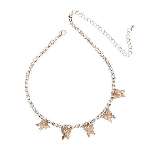 Colier de dama model Tennis cu fluturi, pietre zirconiu alb, auriu