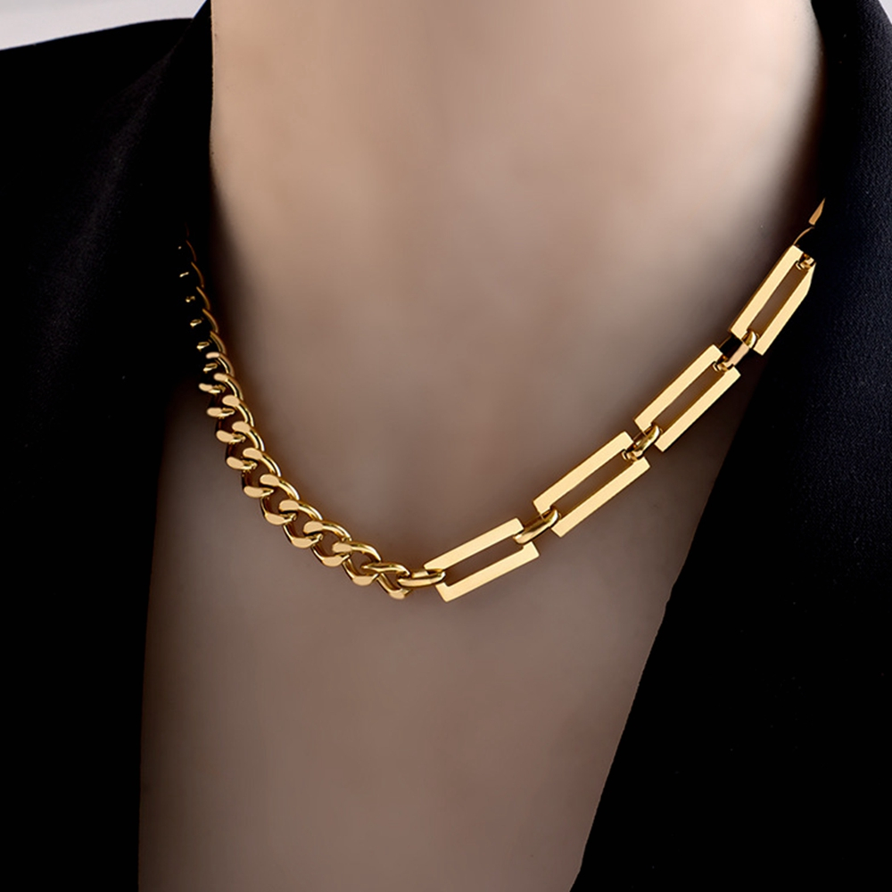 Colier mixt de dama din otel inoxidabil, placat cu aur 18K, auriu