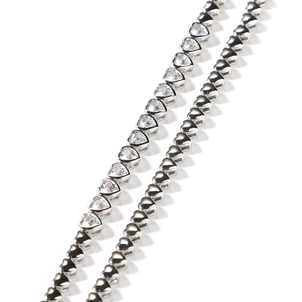 Colier Tennis Luxury taietura in forma de inima, pietre zirconiu, 40 cm, 4 mm, placat cu aur alb 18K, unisex, inchidere cu catarama, Tessero, argintiu