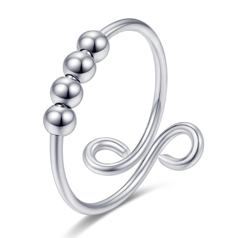 Inel de dama creativ cu bilute rotative pentru anxietate, depresie, antistress, marime reglabila, placat cu aur 18K, Tessero, argintiu