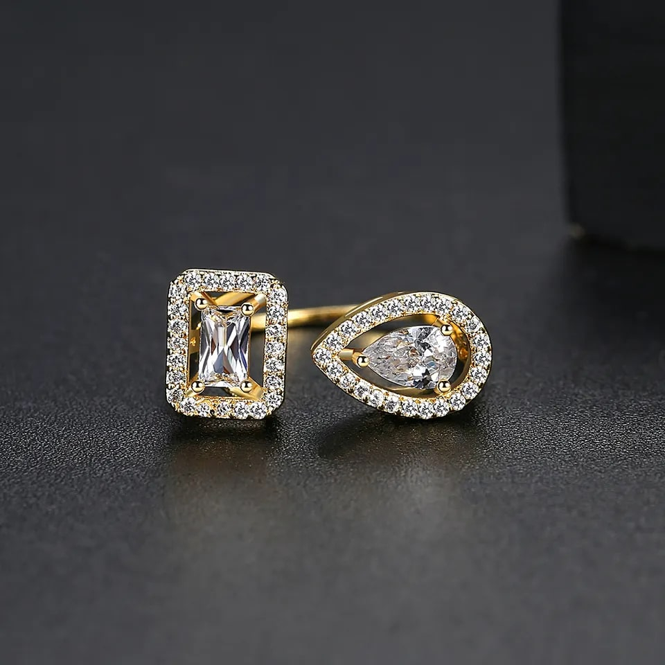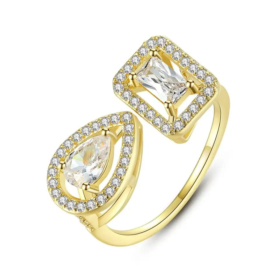 Inel de dama, model cu cristale zirconiu asimetrice, marime reglabila, placat cu aur 18K, Tessero, auriu