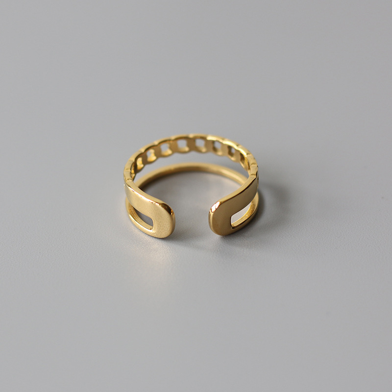 Inel dublu model cuban chain din otel inoxdabil, marime reglabila, placat cu aur 18K