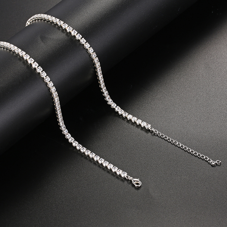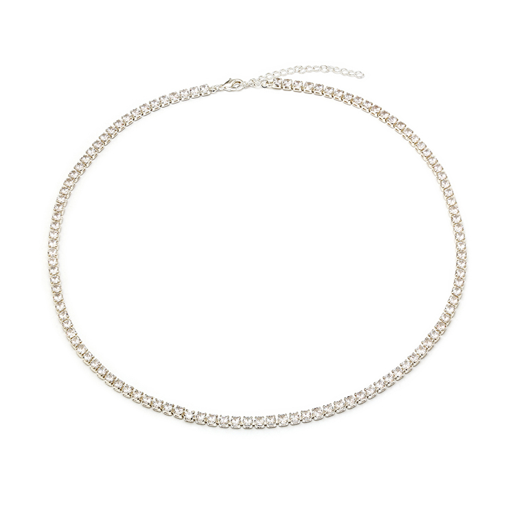 Lant colier model Tennis, pietre din zirconiu alb, 2mm, 40+5 cm, argintiu