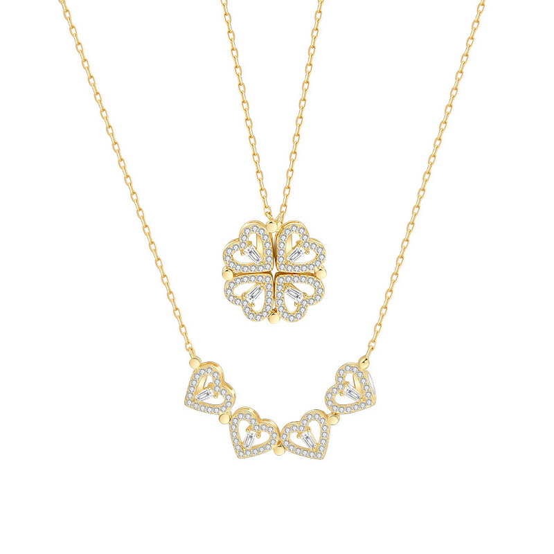Lantisor cu pandantiv 2 in 1 magnetic cu posibilitate de purtare in doua moduri diferite, placat cu aur 18K, cristale zirconiu
