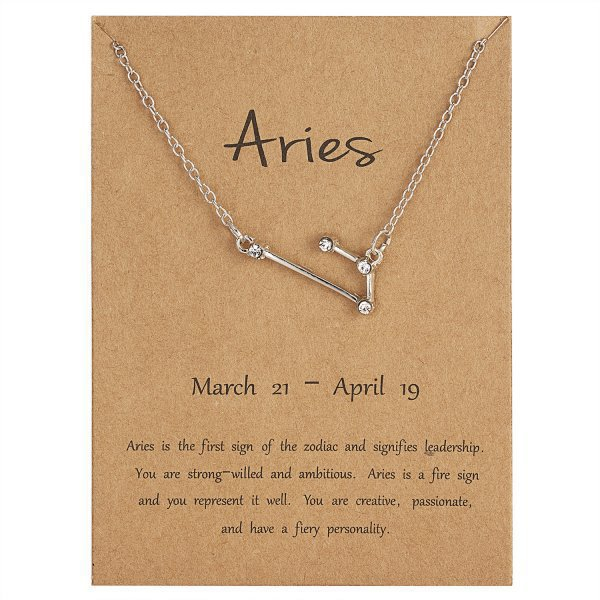 Lantisor cu pandantiv constelatie in functie de zodie, Berbec, placat cu argint, pietre zirconiu, argintiu