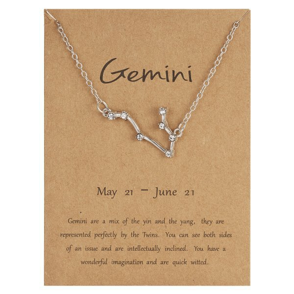 Lantisor cu pandantiv constelatie in functie de zodie, Gemeni, placat cu argint, pietre zirconiu, argintiu