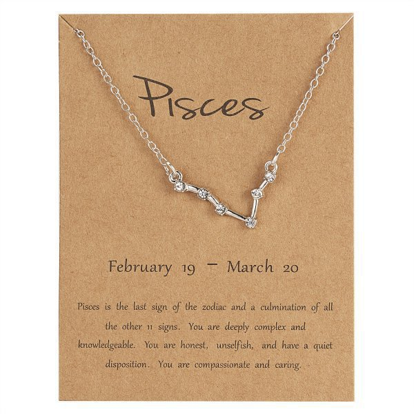 Lantisor cu pandantiv constelatie in functie de zodie, Pesti, placat cu argint, pietre zirconiu, argintiu