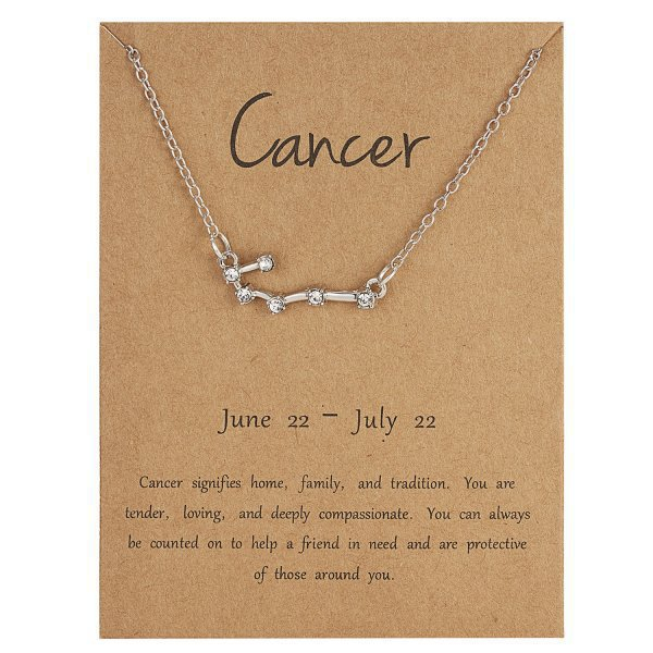 Lantisor cu pandantiv constelatie in functie de zodie, Rac, placat cu argint, pietre zirconiu, argintiu