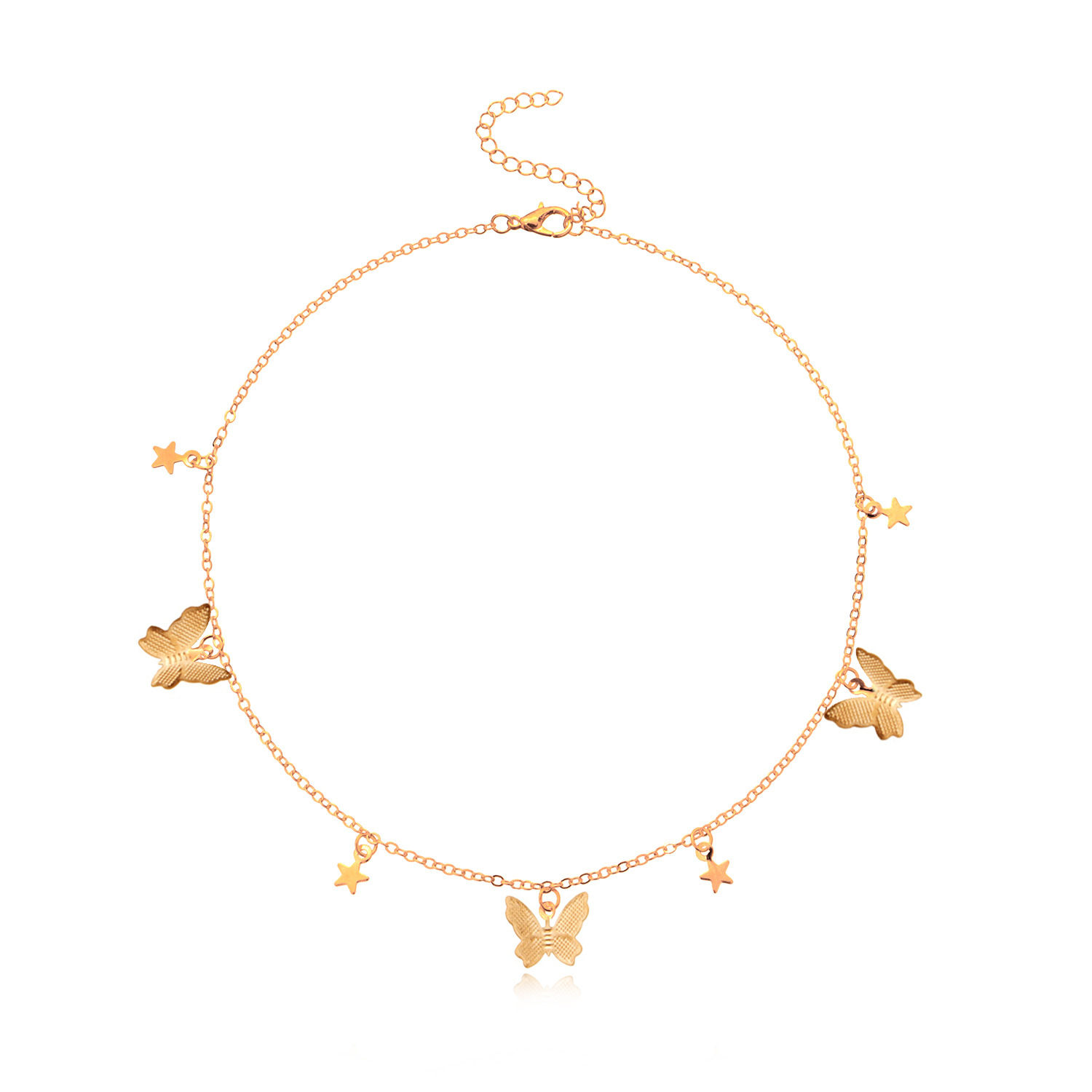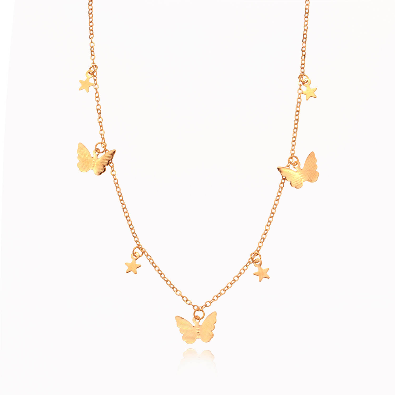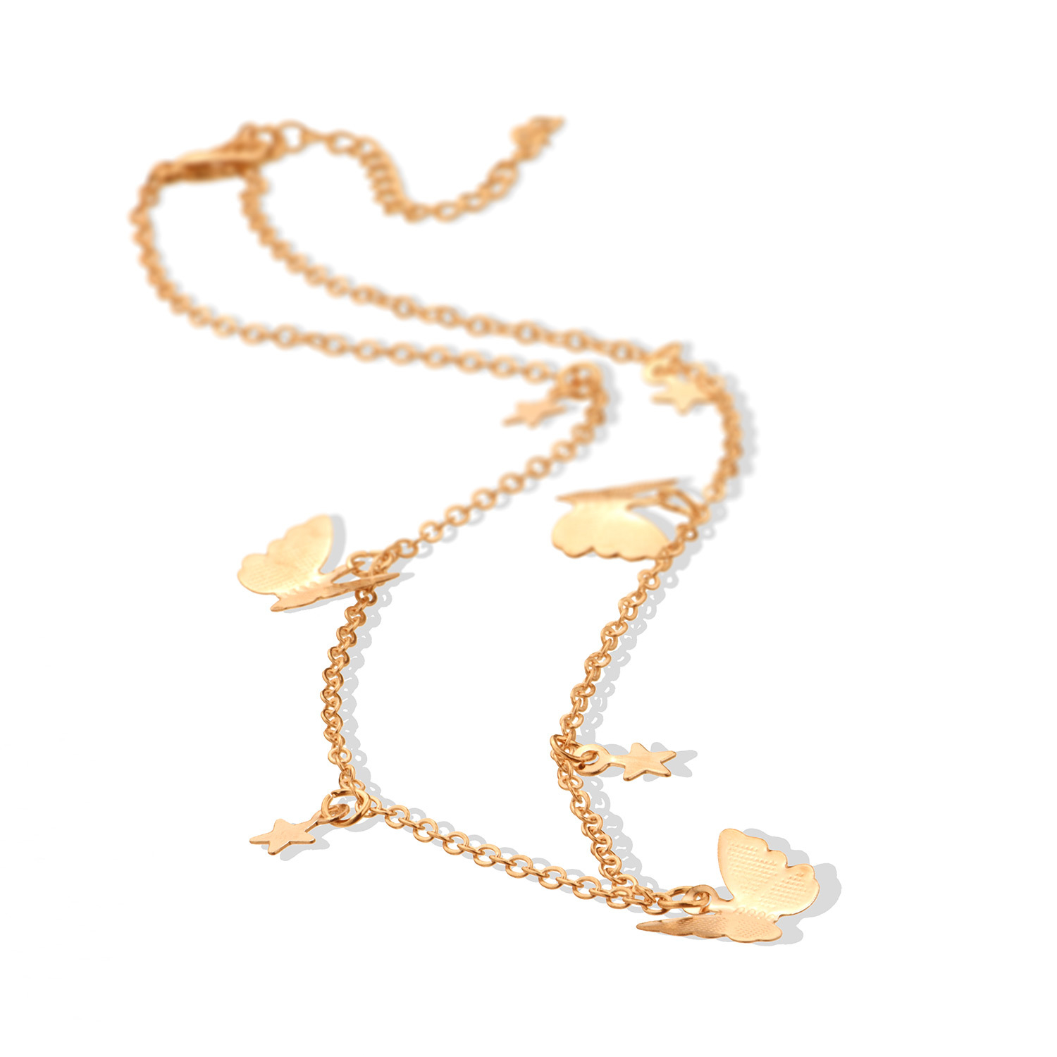 Lantisor delicat ce se aseaza la baza gatului. Lantul are un medalione in forma de steluta si fluture placate cu aur 18k.