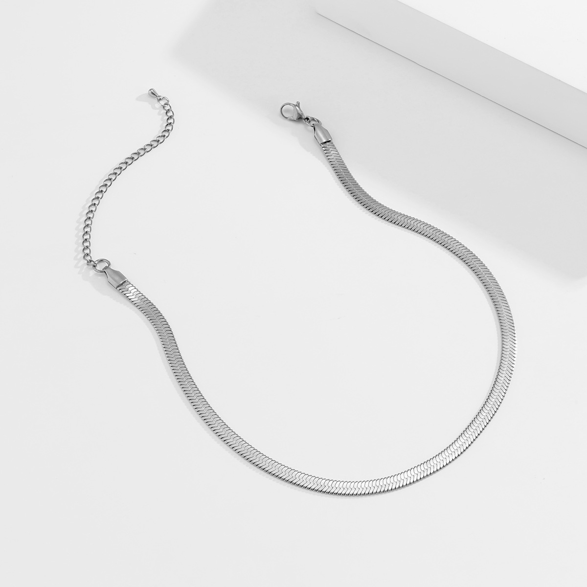 Lantisor din otel inoxidabil, model sarpe, latime 3 mm, 45+5 cm, placat cu aur 18K, argintiu