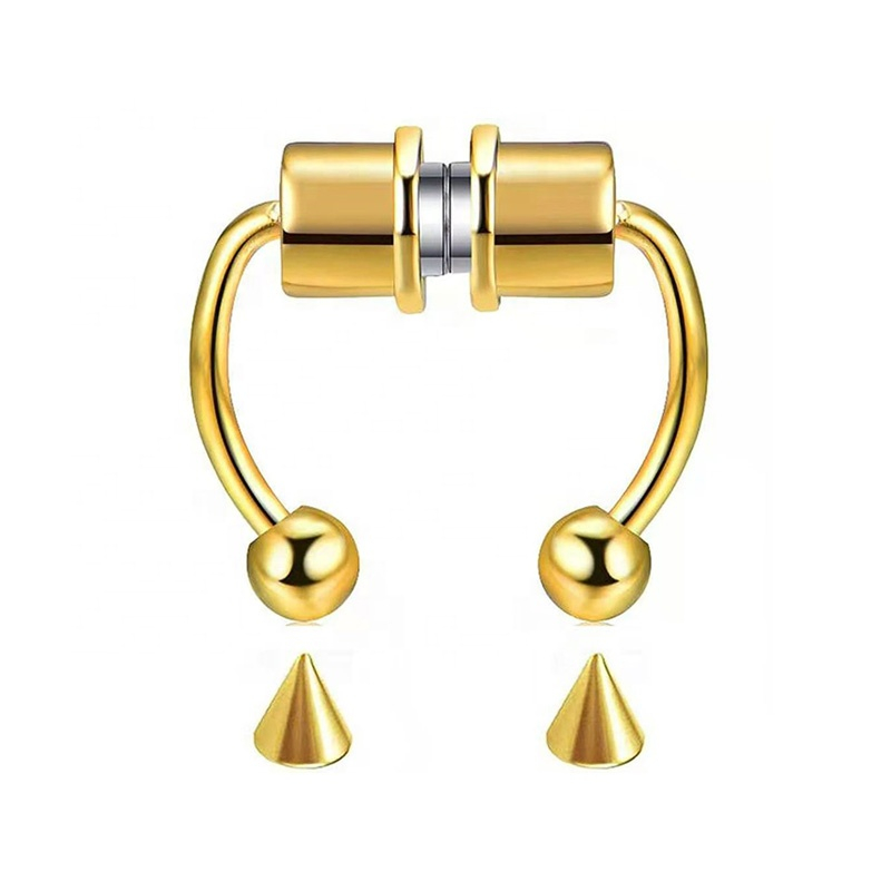 Piercing cercel fals pentru nas, septum, unisex, prindere magnet, otel inoxidabil, auriu