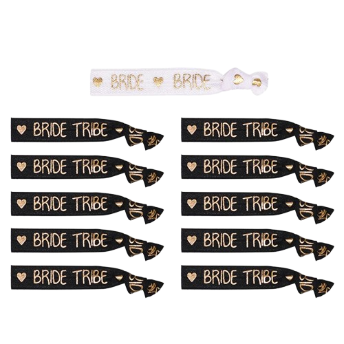 Set de 11 bratari pentur petrecerea burlacitelor, team bride, marime reglabila, Tessero, alb si negru
