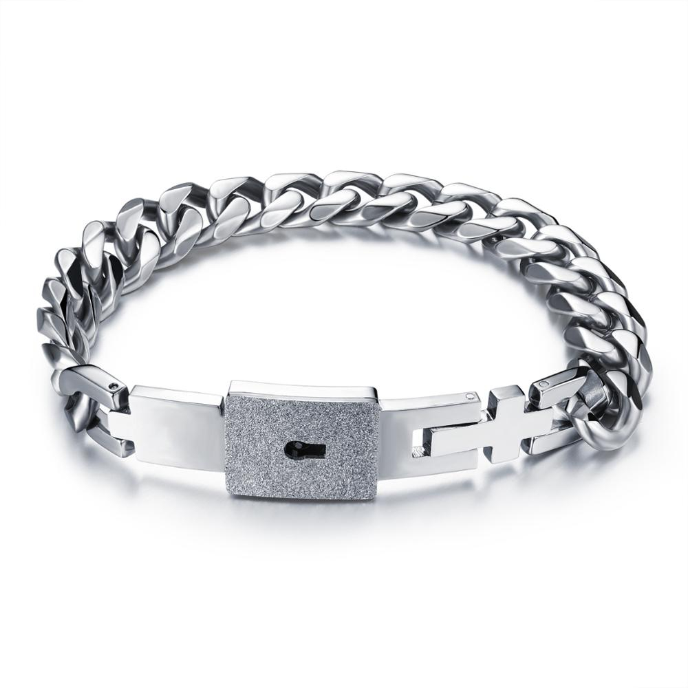 Set de bratara si lantisor pentru cuplu, prieteni, model cu inchizatoare si cheie functionale din otel inoxidabil