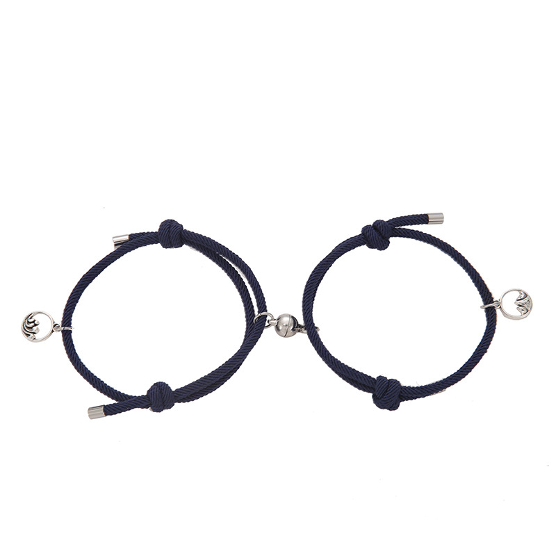 Set de doua bratari cu pandantiv magnet pentru cuplu, prieteni, tip snur, reglabila, albastru