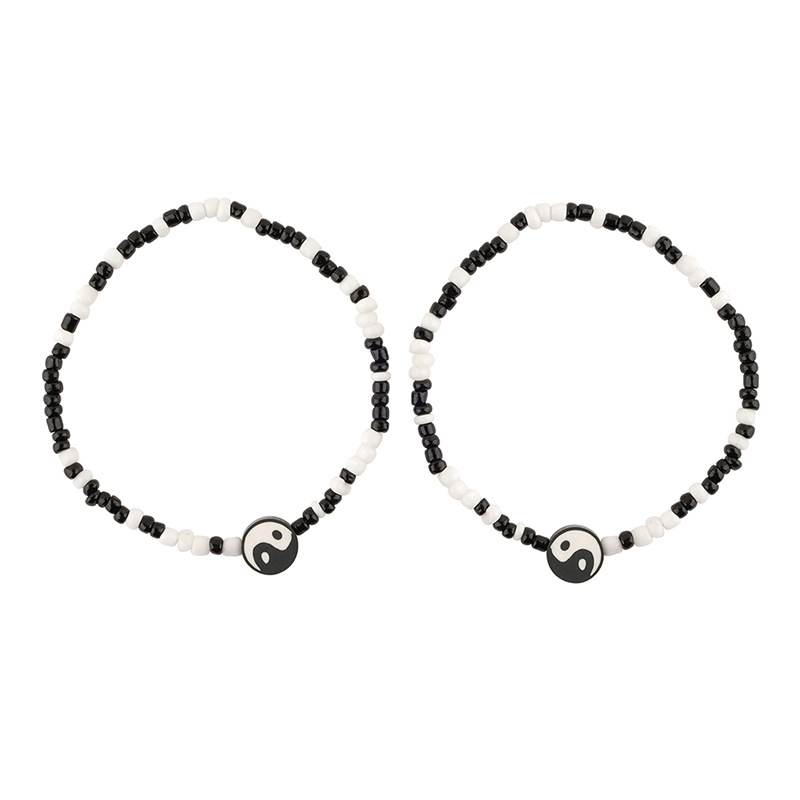Set de doua bratari din margele, model Tai Chi Yin si Yang, marime reglabila, unisex, Tessero, alb si negru
