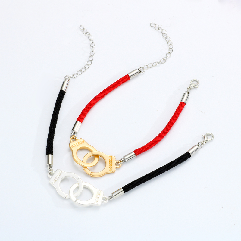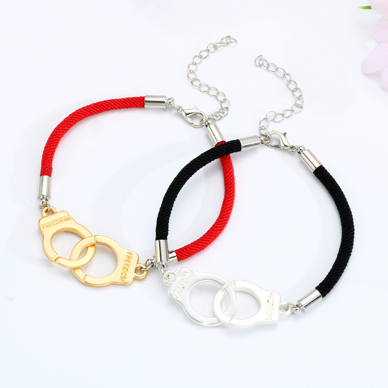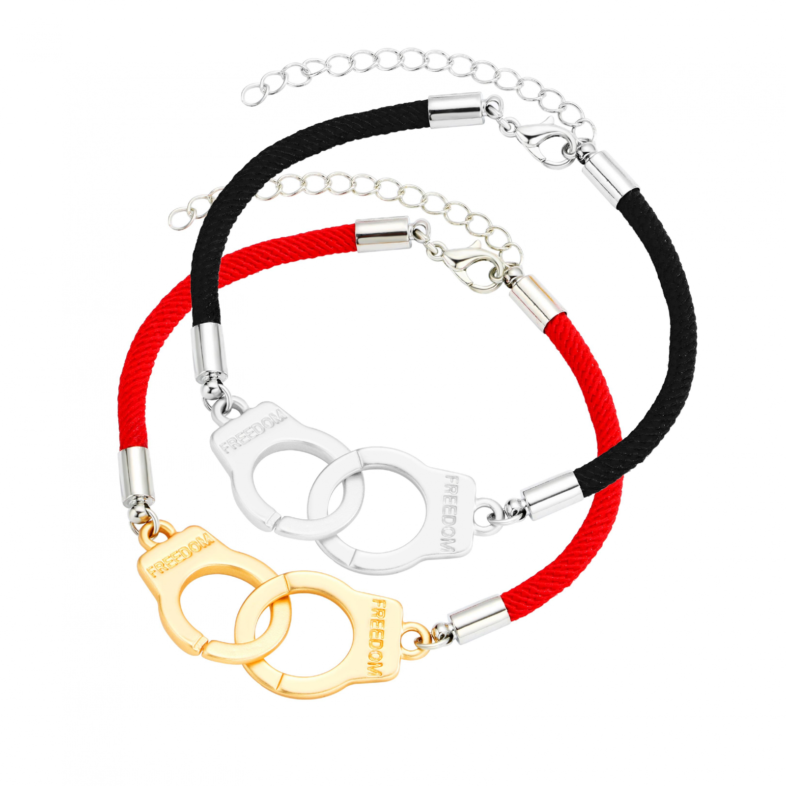 Set de doua bratari din textil pentru cupluri, prieteni, model in forma de catuse, marime reglabila, negru si rosu