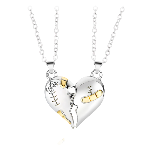 Set de doua lantisoare cu pandantiv cu magnet in forma de inima franta, pentru cupluri, prieteni, argintiu