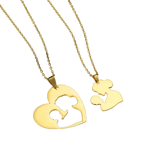 Set de doua lantisoare cu pandantiv mama si copil, cadou pentru mama, otel inoxidabil, placat cu aur 18K, auriu
