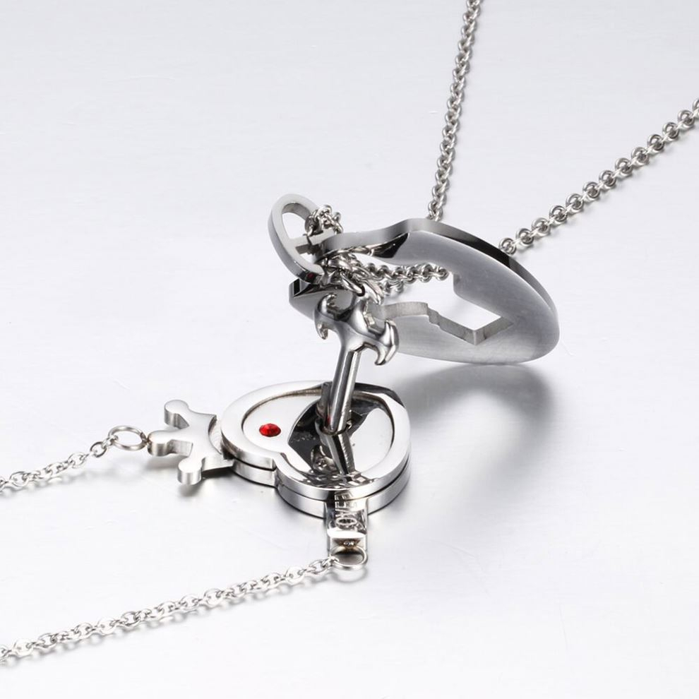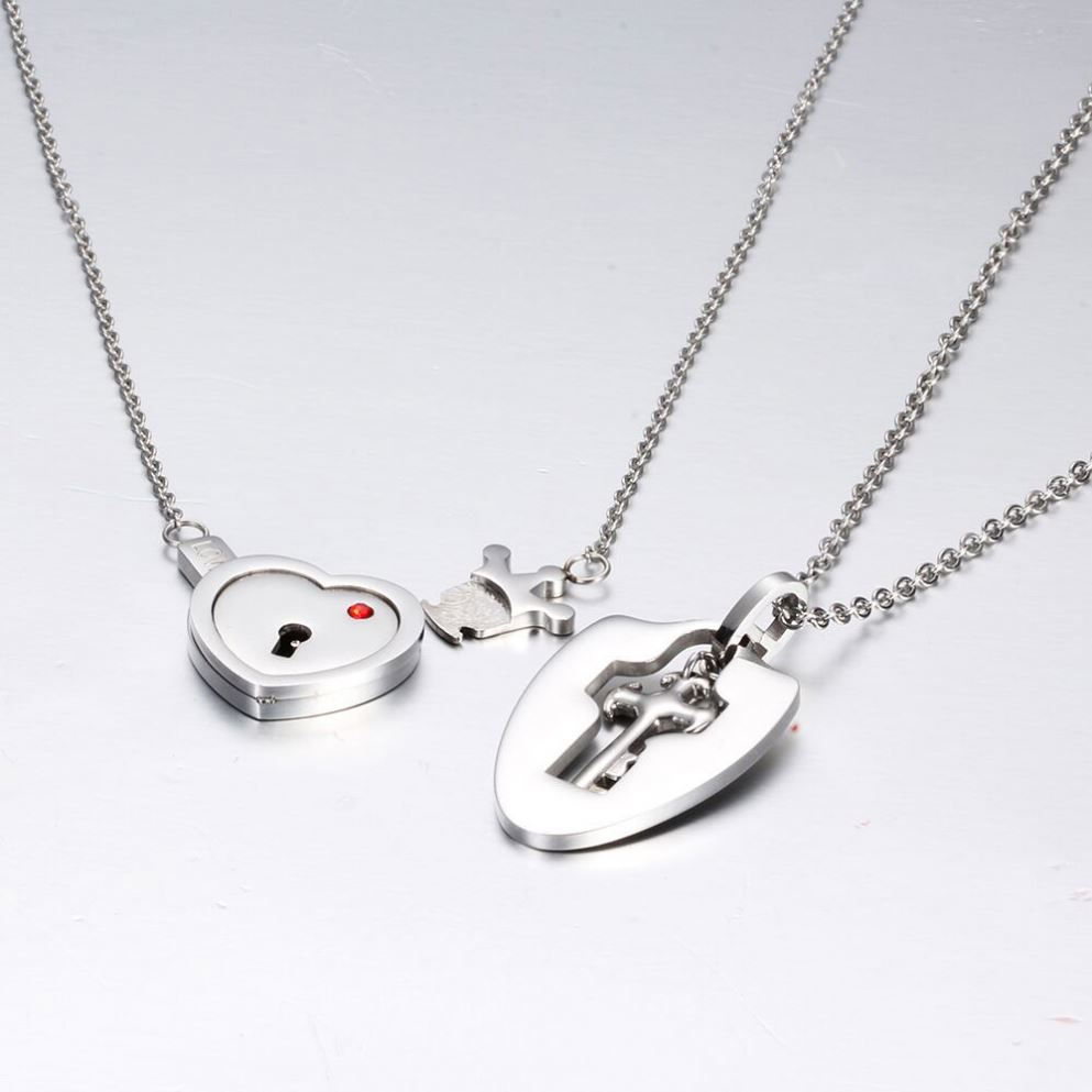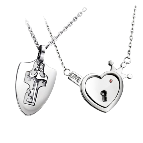 Set de doua lantisoare pentru cuplu, prieteni cu pandantiv in forma de cheie si lacat functionale cu combinatie unica. Cadoul perfect pentru persoana iubita