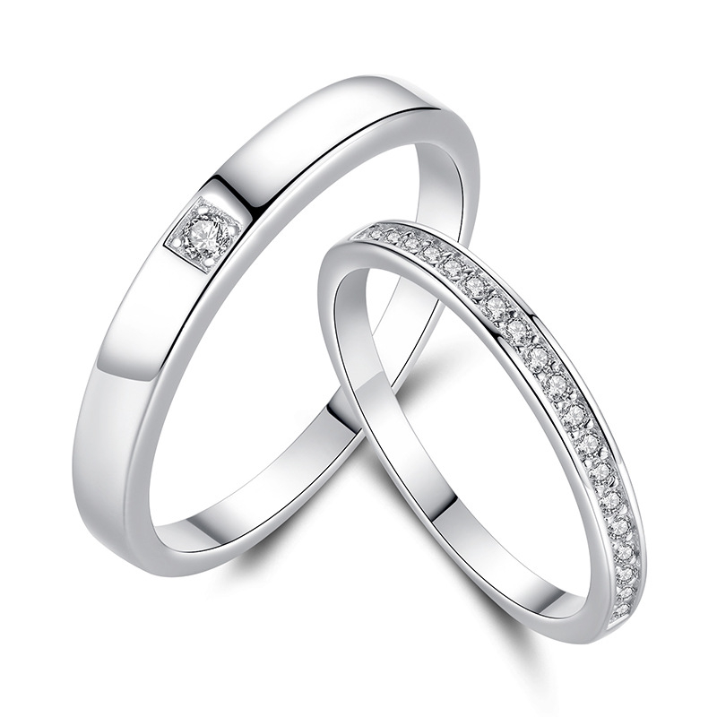 Set doua inele, model cu pietre zirconiu, marime reglabila, Tessero, unisex, argintiu