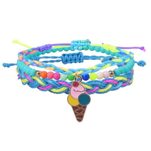 Set trei bratari tip snur din textil impletit si margele, realizat manual, marime reglabila, charm-uri animate, Tessero, albastru inchis
