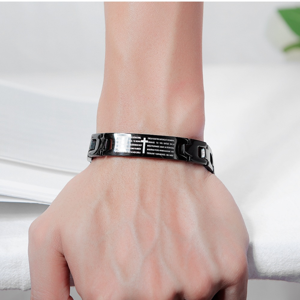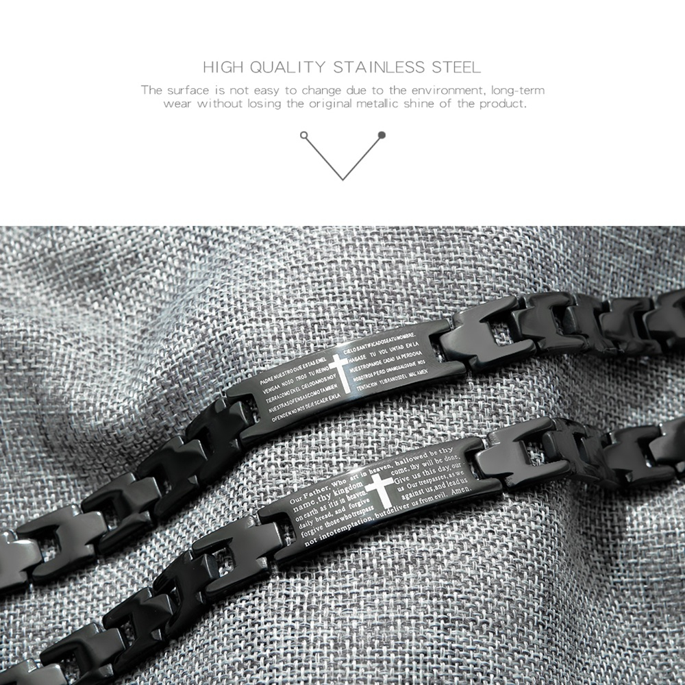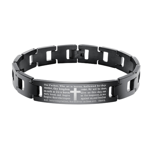 Bratara barbateasca model cu cruce din otel inoxdabil, inscriptie cu rugaciunea ''Tatal Nostru", Tessero, negru