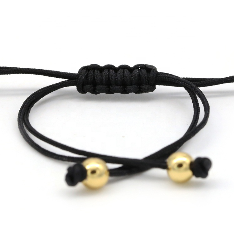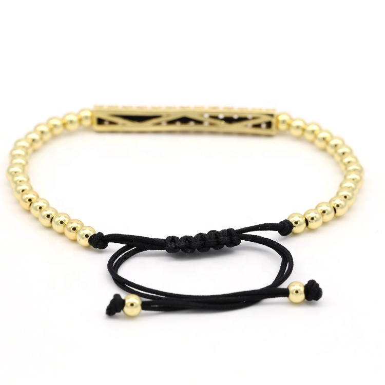 Bratara cu margele luxury, model gold bar, macrame, reglabila pe snur, pietre zirconiu negru, placata cu aur 24K, auriu