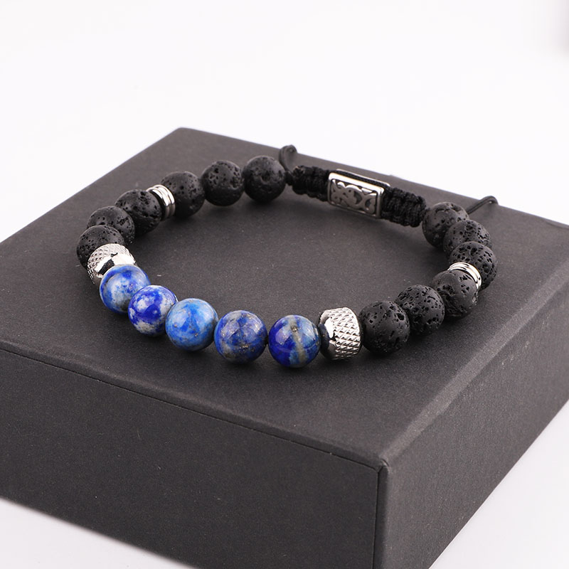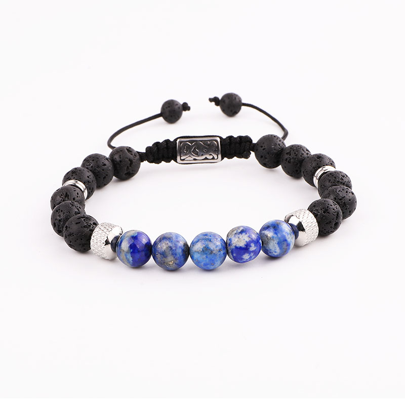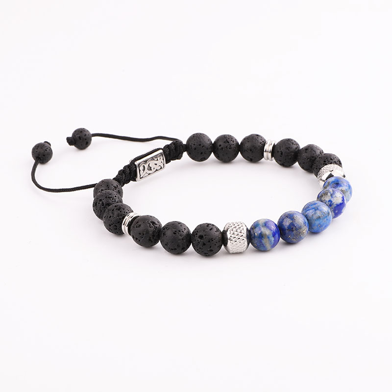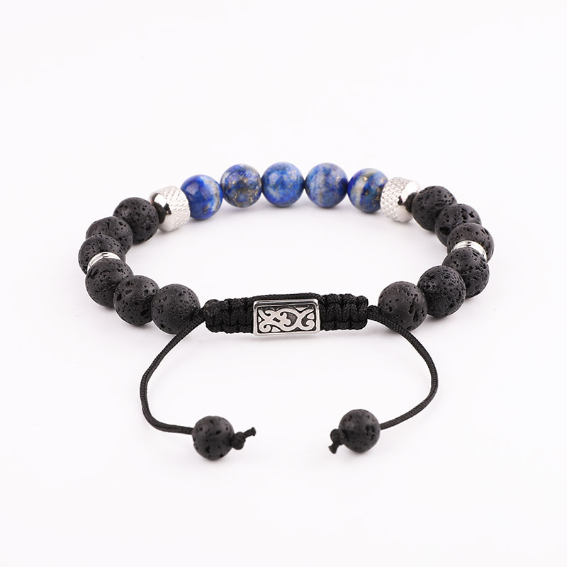 Bratara din roca vulcanica si pietre semipretioase, charm-uri din otel inoxidabil, marime reglabila pe snur, Tessero, negru