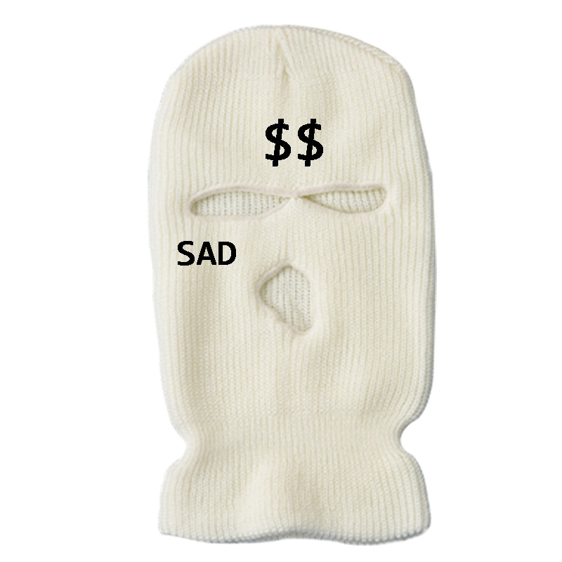 Cagula Hip hop tip Balaclava unisex, brodat cu model SAD si semn dolar, marime universala, trei gauri, Tessero, alb