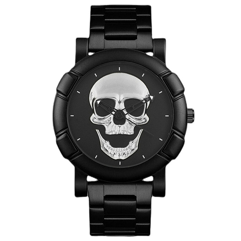 Ceas analog cu cap de mort, mecanism quartz, otel inoxdaibil, rezistent la apa, Tessero, negru mat