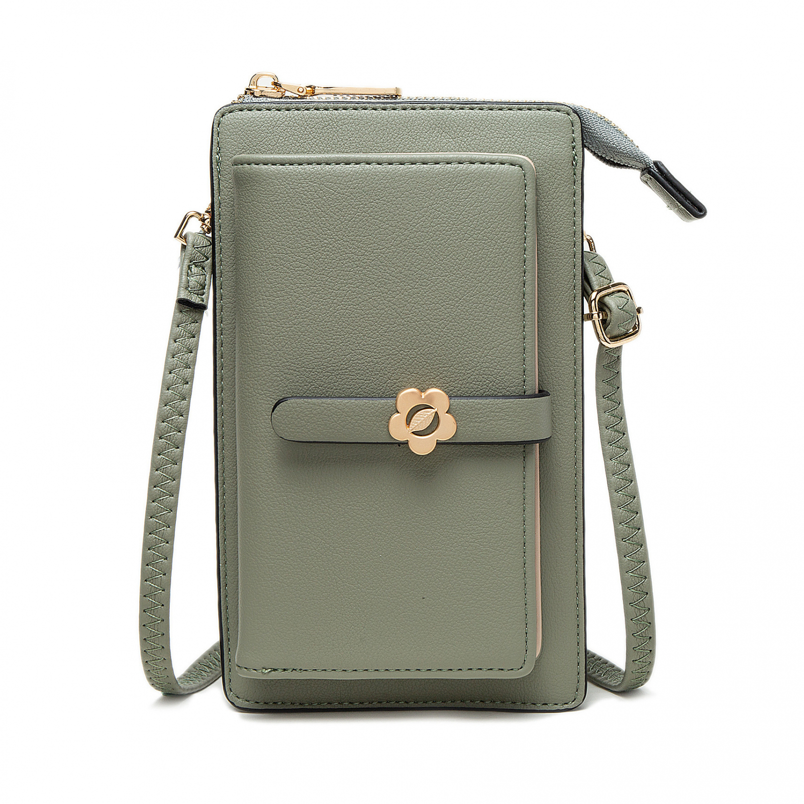 Geanta de dama pentru telefon din piele ecologica, model pentru umar, compartimente multiple, spate transparent tactil, inchidere fermoar, model in forma de floare, dimensiune 19x11.5x5 cm, Tessero, v