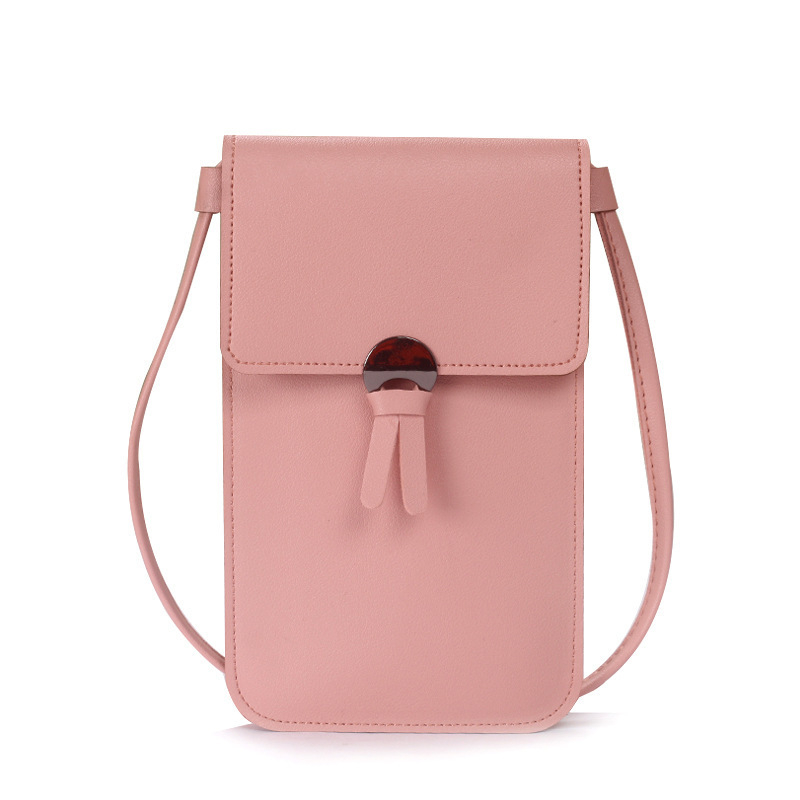 Geanta de dama pentru telefon din piele ecologica, model pentru umar, spate transparent tactil, dimensiune 20x12x0.5 cm, Tessero, roz