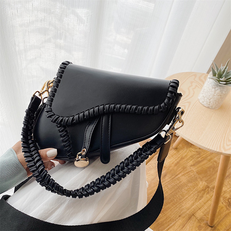 Geanta de dama pentru umar din piele ecologica, model asimetric, piele impletita, compartiment cu fermoar, Tessero, dimensiune 20x17x6 cm, negru