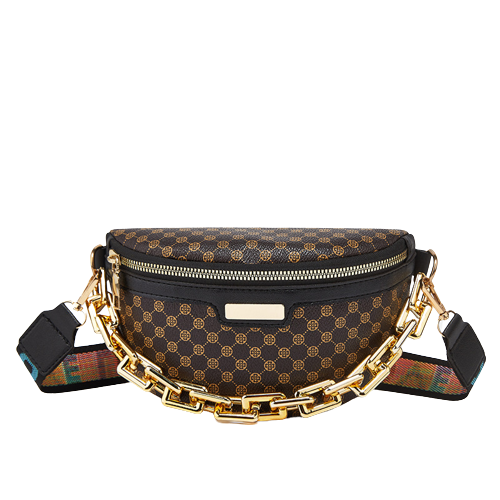 Geanta de dama pentru umar din piele ecologica, model tip borseta cu lant auriu, bareta cu inscriptie "Love", Tessero, dimensiune 21x14x8 cm, maro