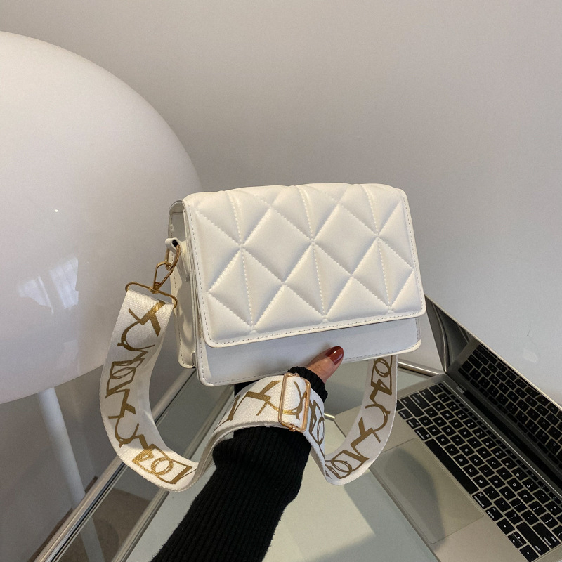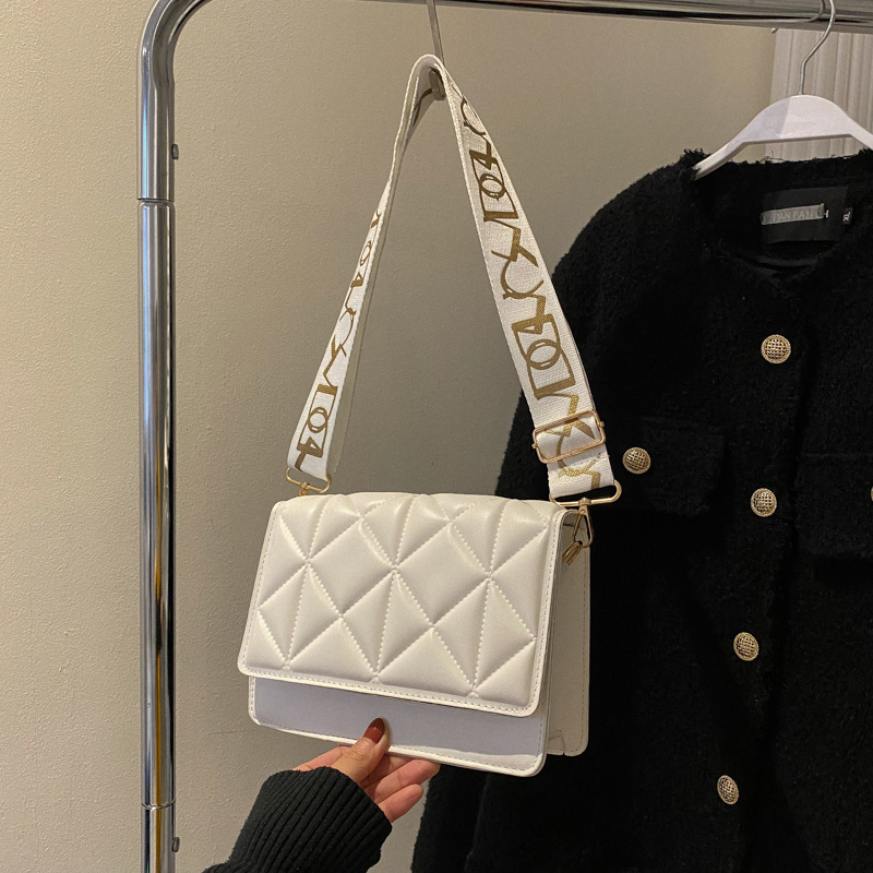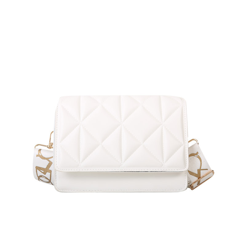 Geanta de dama pentru umar / mana din piele ecologica, cusatura in forma de romb, bareta cu model, Tessero, dimensiune 20x15x7 cm, alb