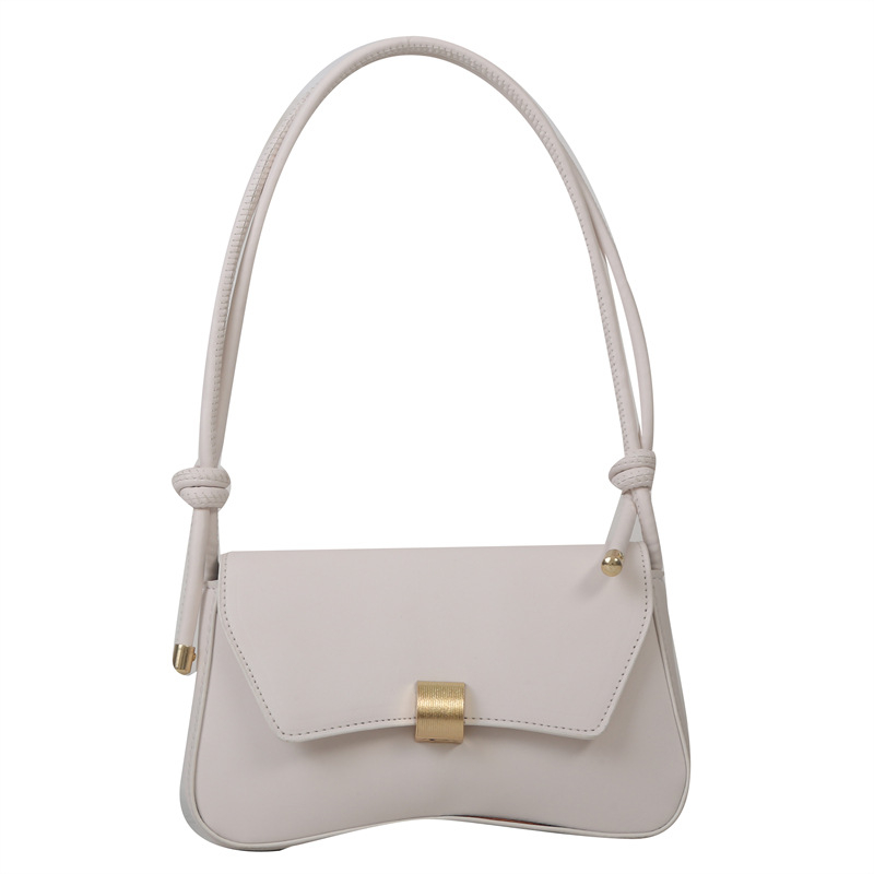 Geanta de dama pentru umar / mana din piele ecologica, inchidere cu clips, model metalic auriu, Tessero, dimensiune 21x12x6 cm, alb