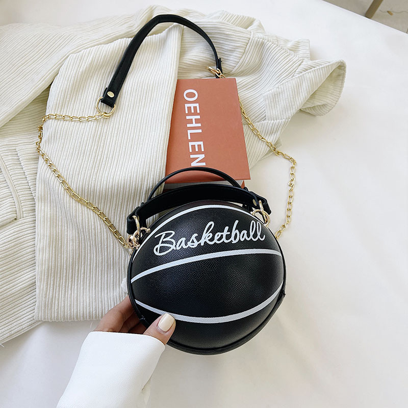 Geanta de dama pentru umar, model in forma de minge de basketball, piele ecologica, negru, dimensiune 16x16 cm, Tessero