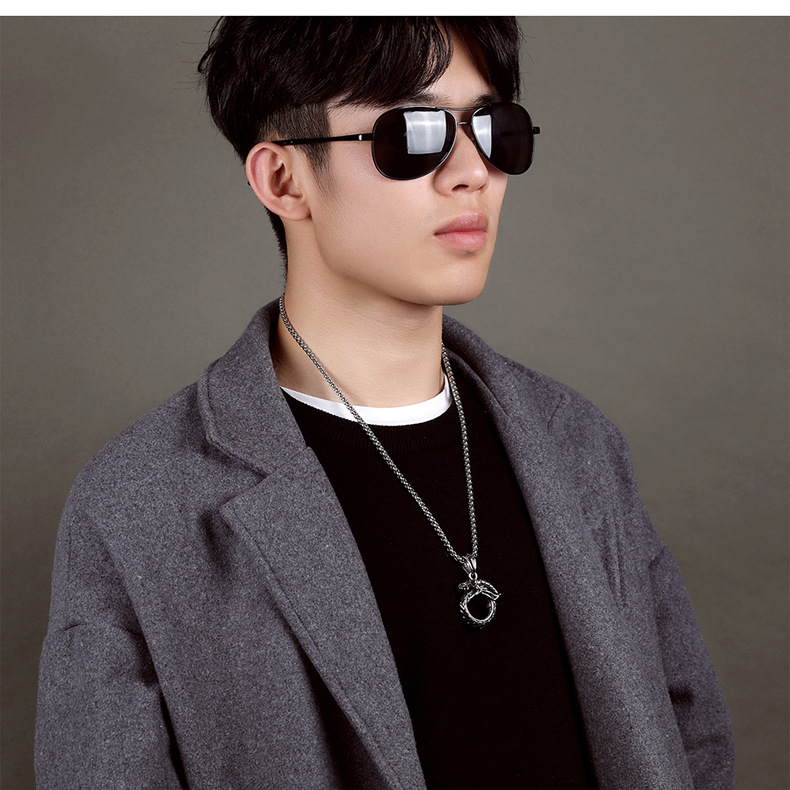 Lantisor design cubic cu pandantiv in forma de dragon, placat cu argint, Tessero, argintiu