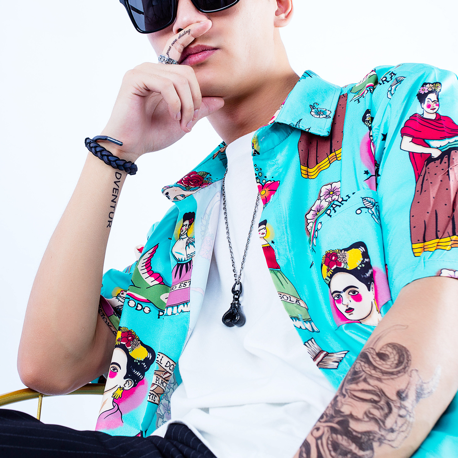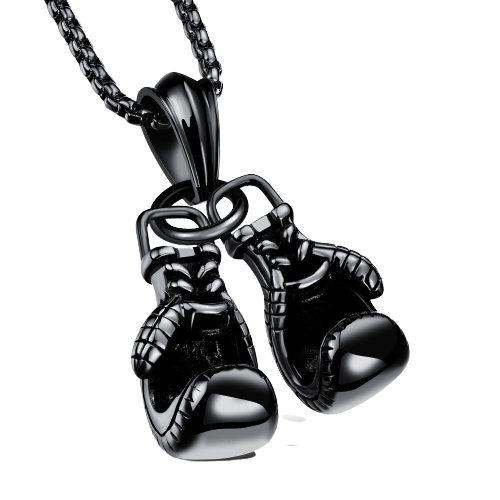 Lantisor design cubic cu pandantiv in forma de manusi de box, negru