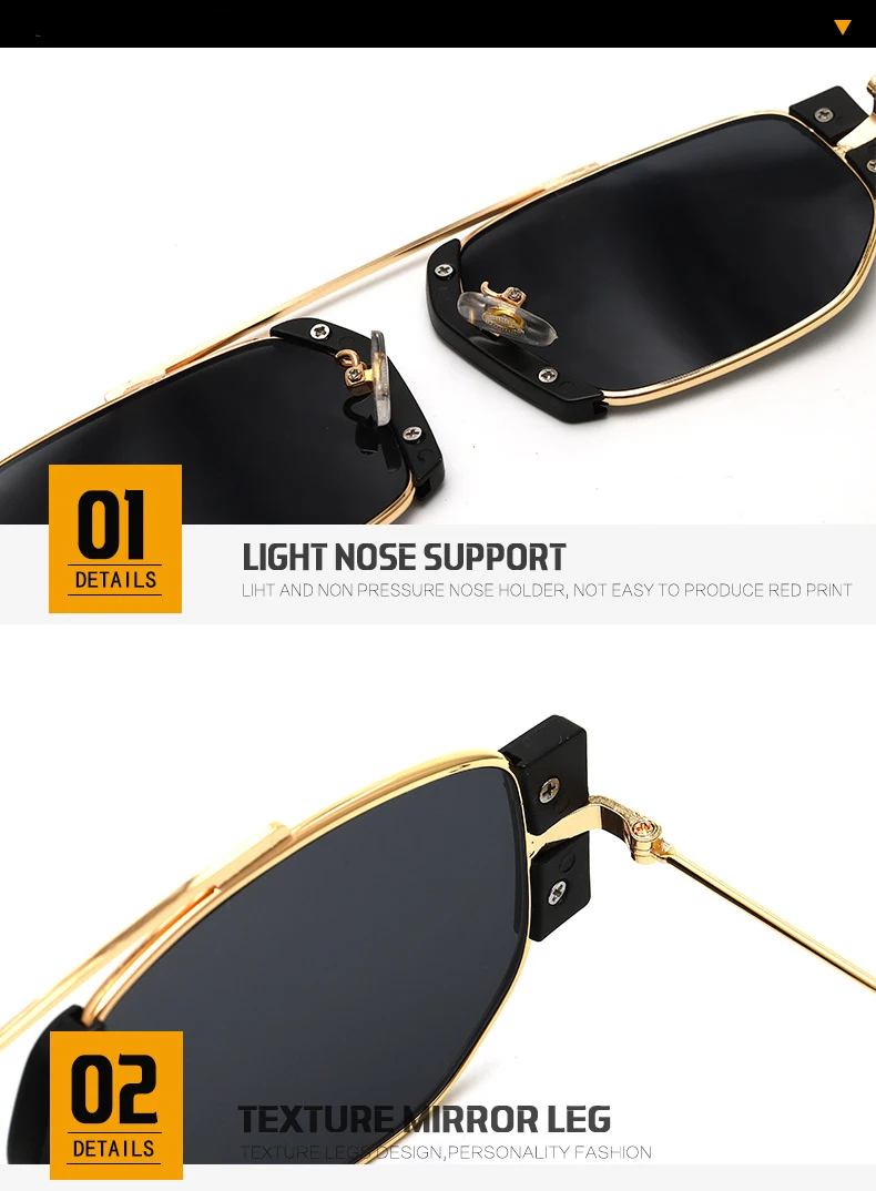 Ochelari de soare, unisex, model retro, rame metalice, lentila neagra, Tessero, negru si auriu