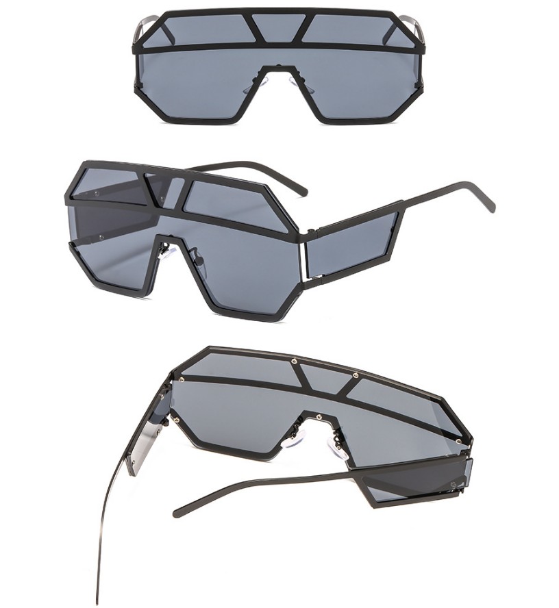 Ochelari de soare, unisex, model Shield, oversize, lentile laterale, protectie UV400, Tessero, negru
