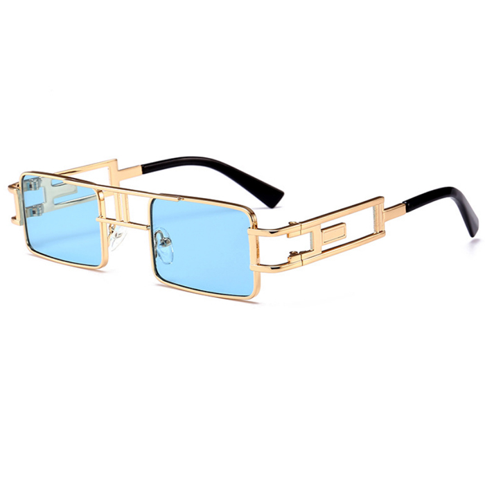 Ochelari de soare, unisex, model square, rame din metal, UV400, lentile cu tenta albastra, Tessero, auriu