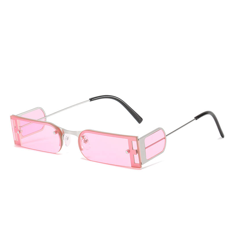 Ochelari de soare, model Square slim, lentile laterale, protectie UV400, unisex, Tessero, roz