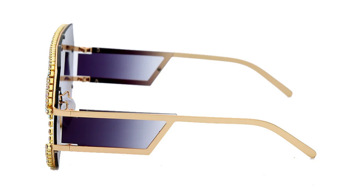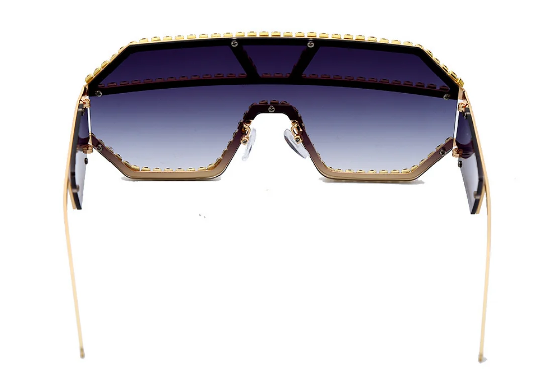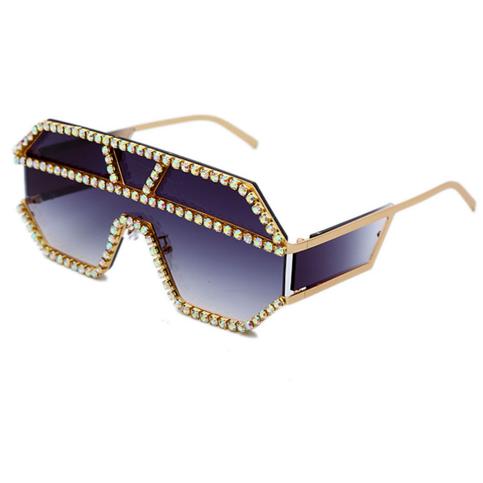 Ochelari de soare unisex, model decorat cu pietre din zirconiu, lentile laterale, oversize, UV400, auriu si negru, Tessero