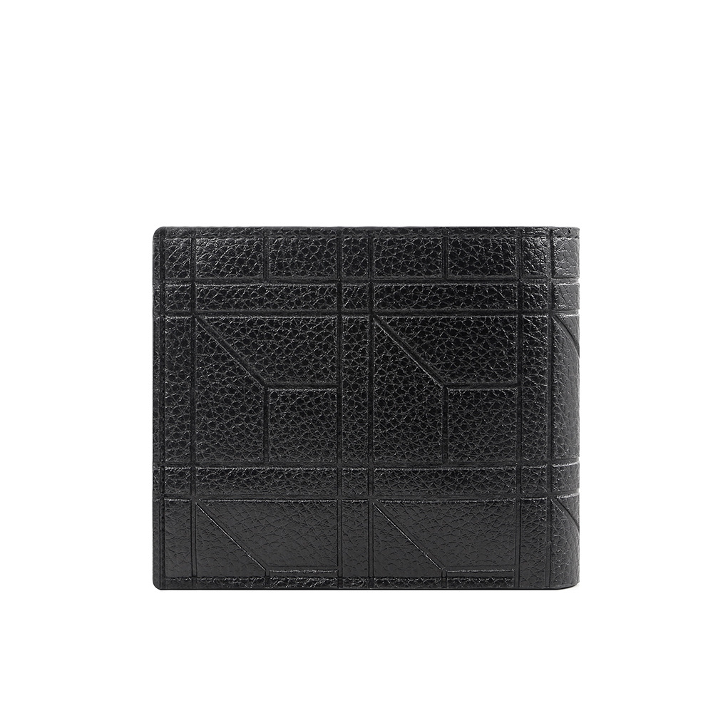 Portofel barbatesc din piele naturala cu model, compartimente multiple, Tessero, negru