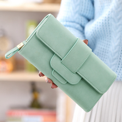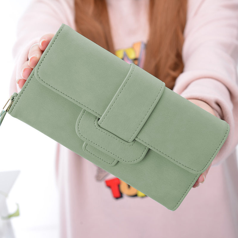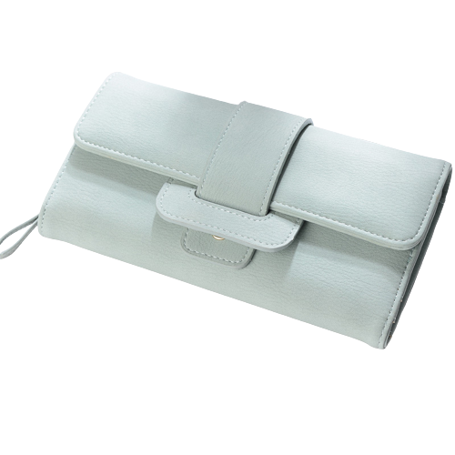 Portofel de dama din piele, pliabil, compartimentat, model in forma de plic, inchidere cu fermoar si capse, Tessero, verde deschis